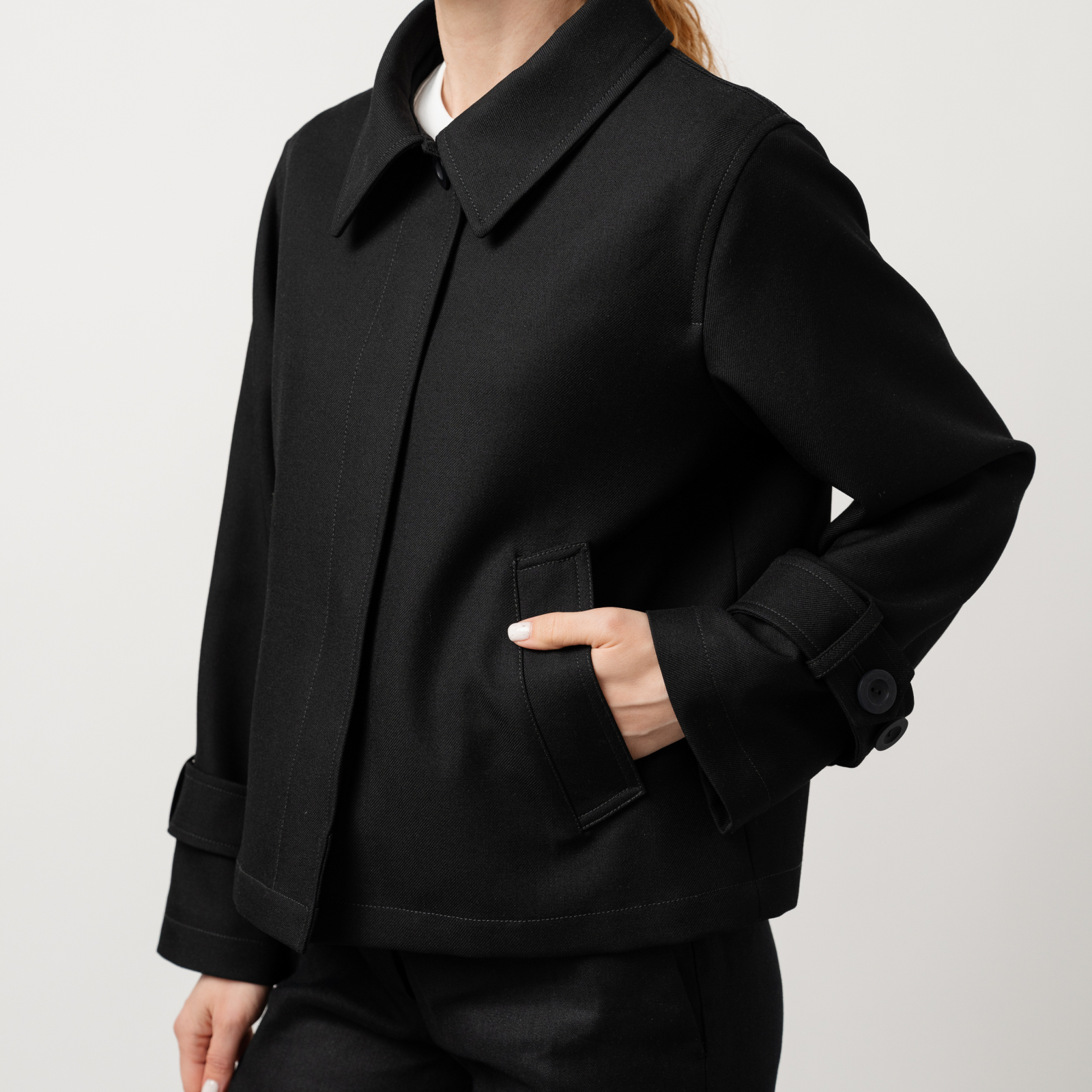 Care recommendation: dry clean only. Thanks to the natural properties of wool, it does not require frequent cleaning – it does not easily retain impurities and allows for proper airflow.
